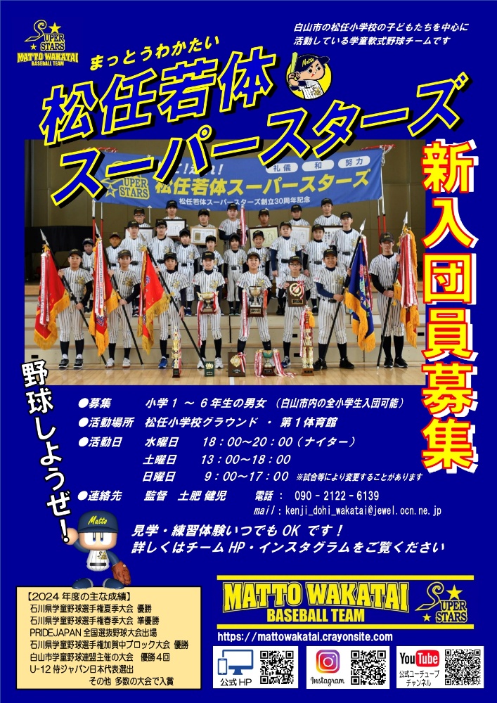 | チーム名 | 松任若体スーパースターズ (まっとうわかたいスーパースターズ) |